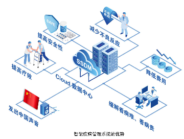 SSDM还具有不良事件实时警示(避免发生不良反应)、风险预测及撤药路线决策辅助的药物风险人工智能系统。通过算法,SSDM可智能辅助医生及时预测、发现及调整用药方案,避免药物有害事件的发生。SSDM还具有病情转归提示系统,通过数据挖掘和机器学习,建立算法,辅助医生实施合理用药方案及疗效预测,形成人工智能临床疗效预测及决策辅助体系。