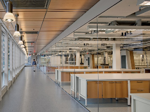 实验室充分运用自然光并引入室外景观,增加科研人员的愉悦感,同时全玻璃走廊可以时刻观察实验过程。实验室顶部的综合吊架和功能柱加强了实验室的灵活性和高效性。