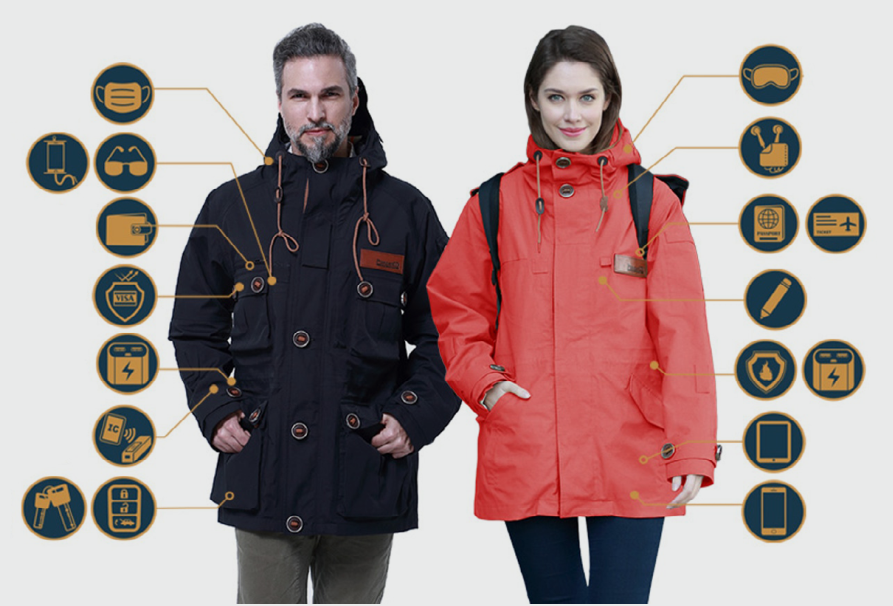 出门远足的外套只是防风、防水、口袋多是不够的,户外装备还要多功能,才可以轻松应对变化的旅行环境和气候。这款PowearIN 2.0模块化多功能旅行夹克几乎可以囊括所有旅行常用的需求。它有超过40个功能模块,包括防风口罩、RFID屏蔽袋、特制的移动电源口袋、手机袋、护照袋等,你还可以自由选择和组合模块,定制出一件符合你要求的衣服。