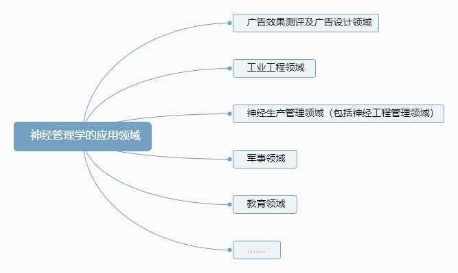 在广告效果测评及广告设计领域,不论是图片广告、视频广告,还是产品广告、服务广告,或是旅游景点广告、电影宣传广告、招聘广告等都可用到神经管理学。对消费者的行为进行神经感知研究,能够产生更好的营销策略、广告策略、广告设计等。目前,很多国家都开展了相关的应用,效果显著。许多知名的咨询公司都设立了相关部门,如成立于1923年的全球知名市场研究公司AC尼尔森就设立了“消费者神经科学”的研究与咨询部门。在工业工程领域,较为突出的应用有神经工效学(神经人因工程)、神经工艺设计(改进工艺以减轻需要长时间付出注意资源或记忆资源的作业岗位的脑力负荷)、神经产品设计(依据客户的神经感知设计符合客户需求产品)、神经包装设计等。在神经生产管理领域(包括神经工程管理领域),较为突出的应用有工作中作业人员的(心力)疲劳监测、注意力集中度监测、警觉度监测、困倦度监测等,以保证生产线上产品质量和生产线的安全。在军事领域,神经管理学的应用涉及面广且有深度,它对提高战斗力有明显的作用,如军事作业领域(包括战斗作业领域)的应用、睡眠监控与改善领域的应用(涉及官兵的战斗力)、认知疲劳领域的应用、有特定要求的兵种选拔等。此外,在教育领域,特别是儿童教育领域、艺术教育领域(如音乐、美术等),神经管理学也有应用。