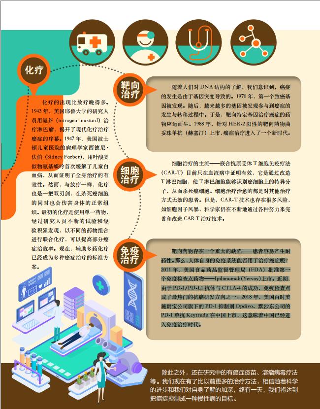 除此之外,还在研究中的有癌症疫苗、溶瘤病毒疗法等。我们现在有了比以前更多的治疗方法,相信随着科学的进步和我们对自身了解的加深,终有一天,我们将达到把癌症控制成一种慢性病的目标。