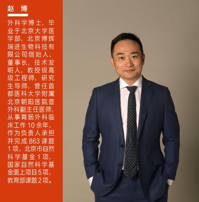 两利相衡取其重,在“还有比做外科医生更重要的事情”这一信念的驱使下,2012年赵博创立北京博辉瑞进生物科技有限公司(以下简称“博辉瑞进”),任董事长兼首席技术官,致力于再生型生物材料的研发,带领团队建立了具有自主知识产权的再生型生物医用材料核心技术和产品体系,主导开发植入性医疗器械产品和微创外科器械产品。