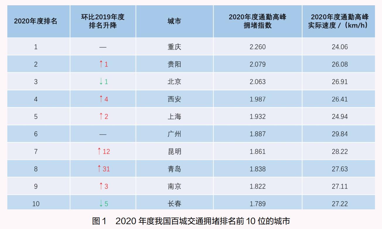 从交通管理方面来看,传统的城市交通网络缺少数字化管理,存在路面数据无法及时获取、交通管理系统的智能化水平低等问题。百度地图发布的《2020年度中国城市交通报告》显示,2020年全国交通拥堵城市排名前10位的城市(见图1)中,北上广三大城市皆“榜上有名”,某些西部地区城市也在榜单内,如贵阳,其通勤高峰实际速度仅26.08 km/h,是全国第二拥堵的城市。可以发现,我国一线、二线城市是交通管理的重点区域,但某些三线、四线城市缺乏科学化的交通管理,也导致交通路面拥堵。AI的识别技术与超强算法可以实时监控路面异常情况,预判拥堵趋势,调整信号灯时间差,对路面网络进行整体优化。