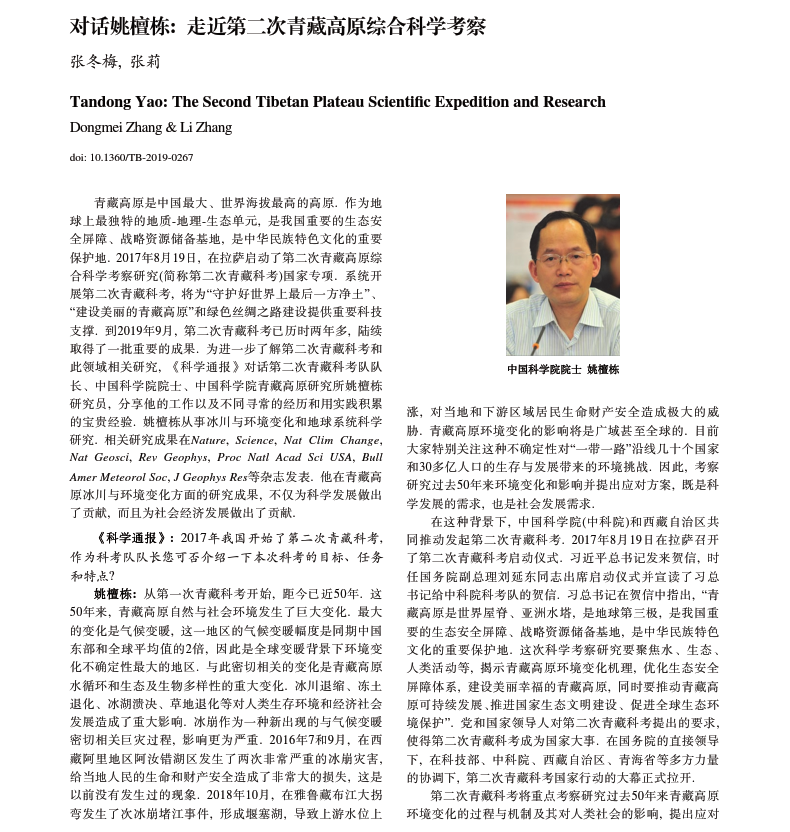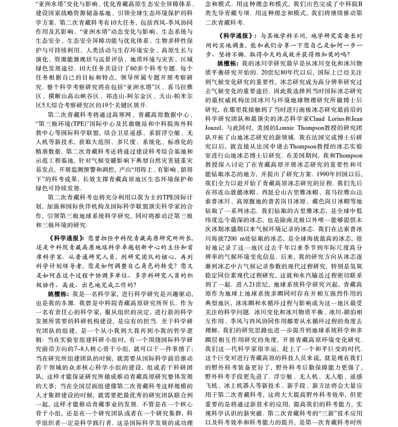 对话姚檀栋 走近第二次青藏高原综合科学考察