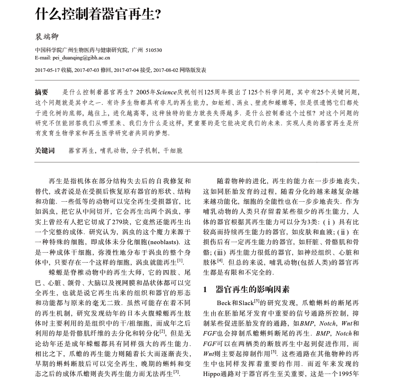 什么控制着器官再生