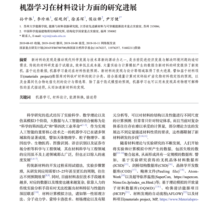 机器学习在材料设计方面的研究进展