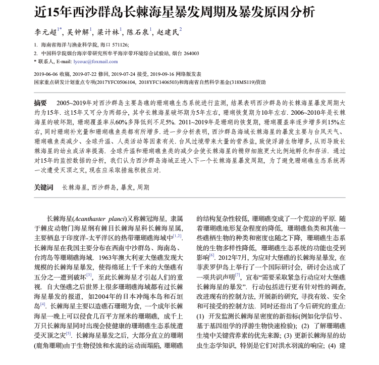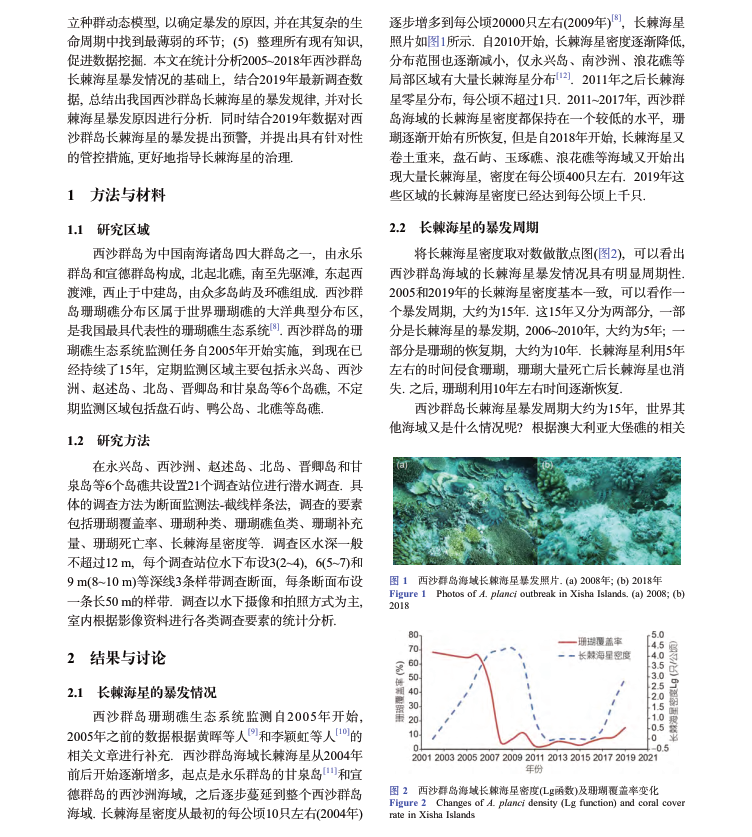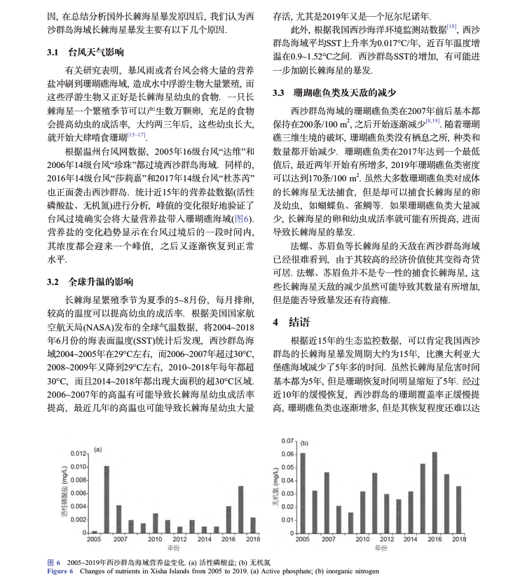 近15年西沙群岛长棘海星暴发周期及暴发原因分析