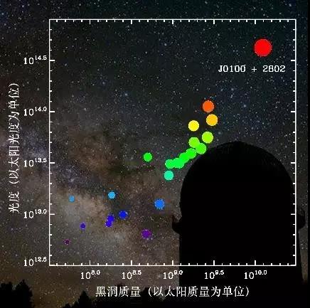 图2 SDSS J0100+2802是宇宙早期光度最高、黑洞质量最大的类星体
