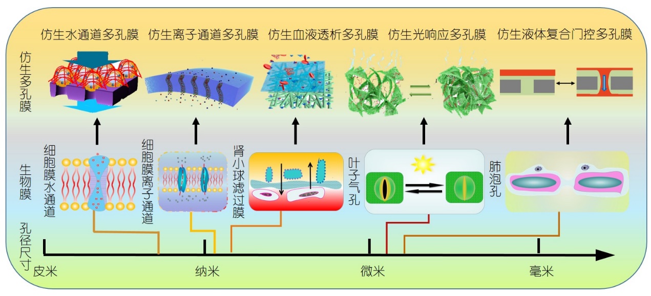 自然界的生物体内存在不同尺度孔径的生物膜,经过长时间的进化,展现出具有近乎完美的结构,赋予其在特定环境中独特的选择分离性、智能响应性和智能门控性。近年来,仿生多孔膜材料的性能不断突破、应用领域不断拓展。