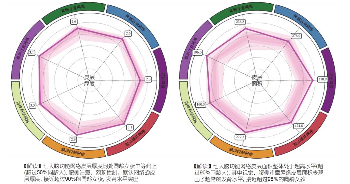 脑功能网络皮层厚度及面积分布
