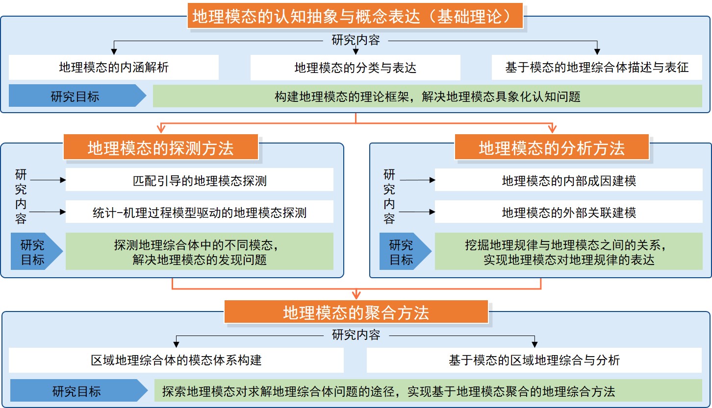 本文分析了地理综合研究方法的发展现状,总结归纳问题所在,尝试提出基于地理模态的地理综合研究方法构想,旨在以内涵空间格局、演化过程、相互作用机理的地理规律性认知为指导,以地理模态作为规律性认知表达及计算的载体,发展兼备统一理论基础与操作方法的地理模态综合与分析框架,形成格局、过程、机理兼顾的地理综合模态方法体系,打通片段地理认知到综合地理认知的双向通道,形成地理数据到地理规律再到综合地理认知的模型方法,促进地理学综合研究的发展。