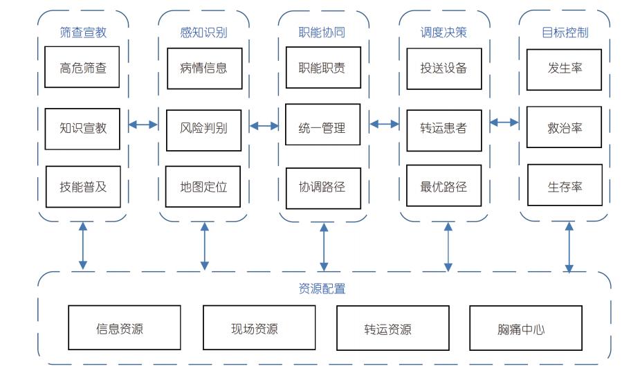 在文章中,作者提出了包括筛查宣教、感知识别、资源配置、职能协同、调度决策、目标控制多个重要环节在内的“胸痛管理: 生命健康路径”。