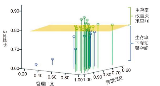 最后,作者还将管理的广度和强度纳入考量,讨论了对胸痛管理路径的“多维优化”。如下图所示,只有同时提高管理广度(将尽可能多的高危患者纳入胸痛管理体系)和管理强度(对每一名高危患者进行足够有效的监控和管理),才能在社会层面上,使生存率得到整体性的提高。天津市的成功案例,也正是多维优化效果的体现。