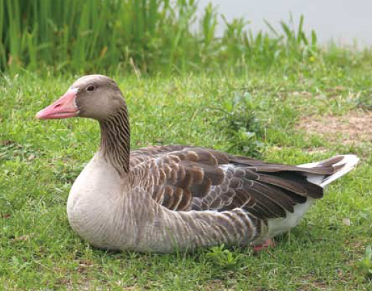 大家都被这突然的叫声给镇住了,纷纷起身到窗口一探究竟。我跑到办公楼外,一眼就看到门前的草坪上落着两只灰雁。它们身披灰褐色的羽毛,背部有一些白色的纹路,尾部是纯白的羽毛,尤其明显的是它们那粉红色的嘴和脚:真惹人喜欢!它们没理会好奇的我,正低头悠闲地啃着地面上新长出来的嫩草。