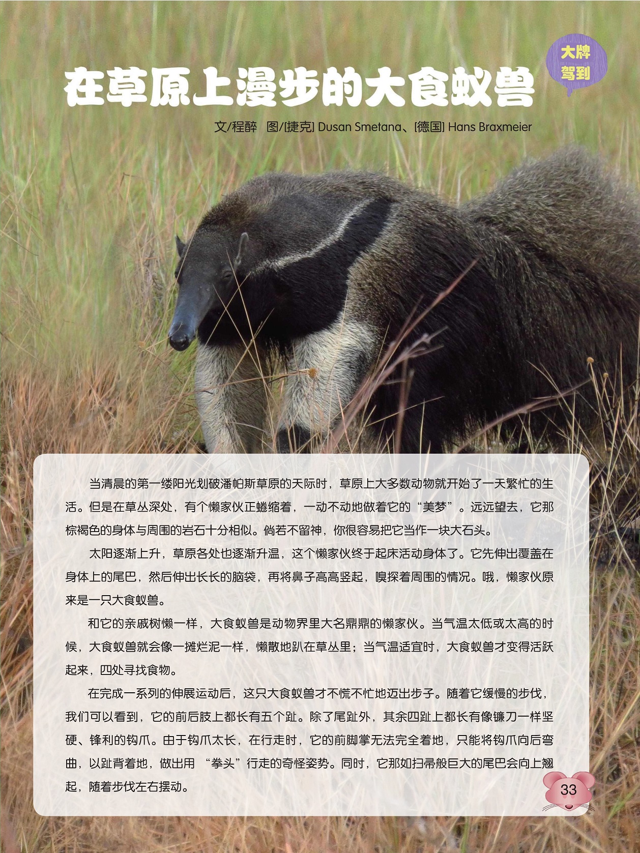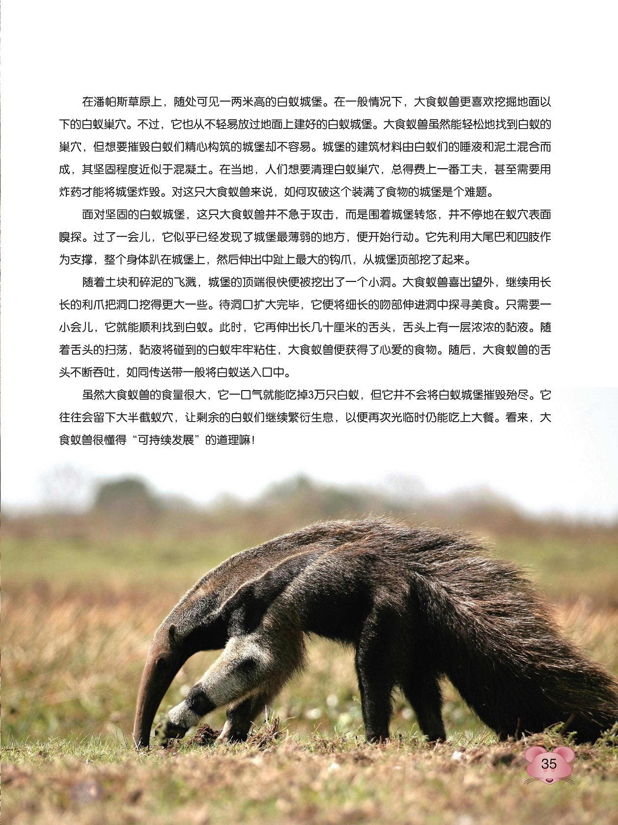 在草原上漫步的大食蚁兽