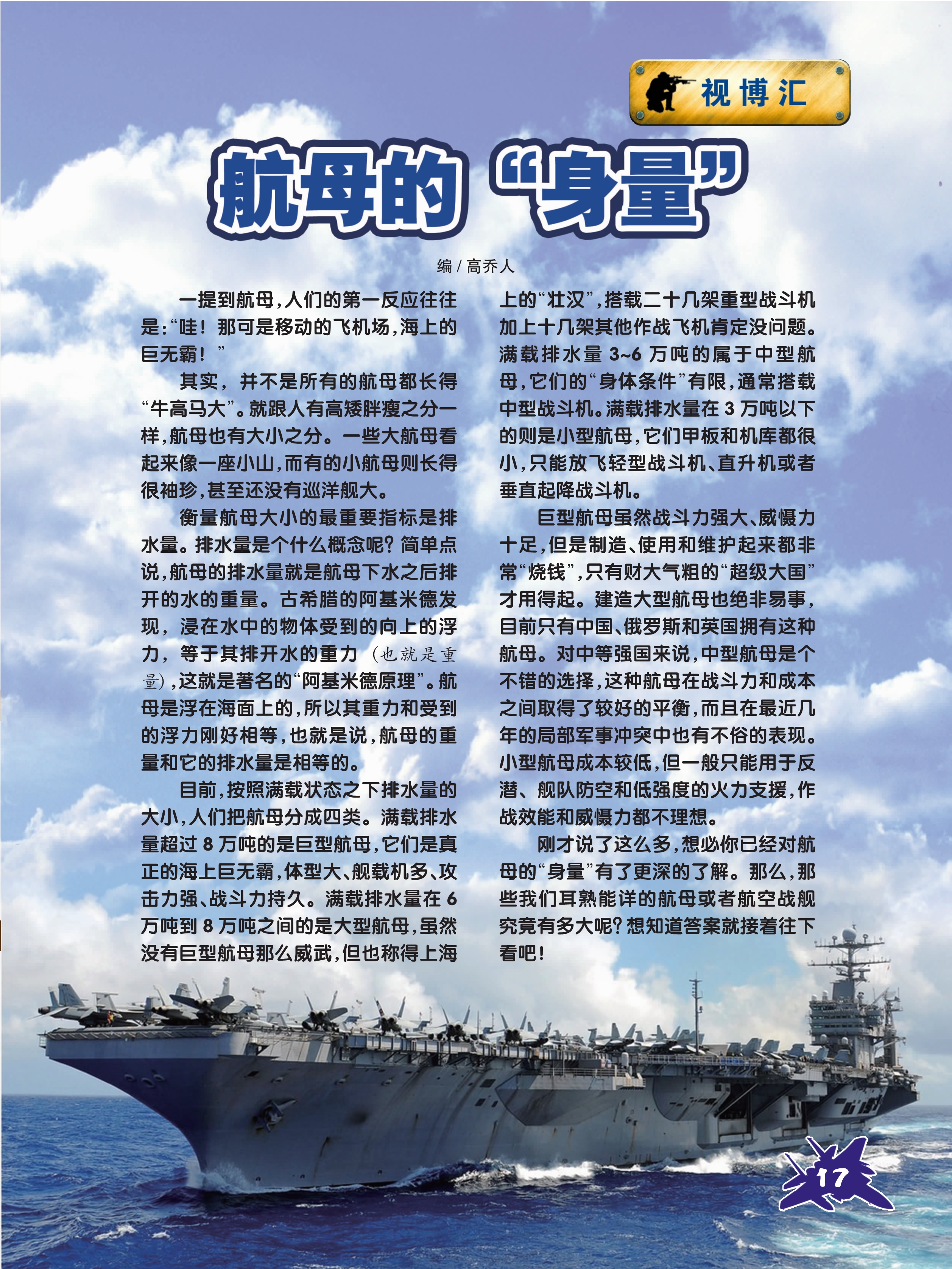 一提到航母,人们的第一反应往往是:“哇!那可是移动的飞机场,海上的巨无霸!”其实,并不是所有的航母都长得“牛高马大”。就跟人有高矮胖瘦之分一样,航母也有大小之分。一些航母看起来像一座小山,而有的小航母则长的很袖珍,甚至还没有巡洋舰大。