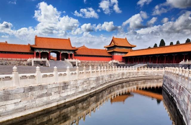 北京故宫又称“紫禁城”,位于北京市中心,由明朝皇帝朱棣始建于1406—1420年间,此后作为中国明、清两朝的皇宫使用至1911年,历时505年。宫殿占地72万平方米,内含17.97万平方米古建筑和各类宫廷遗存,建筑群体规模宏大,庄严壮丽,是 无与伦比的东方古代宫殿建筑杰作。