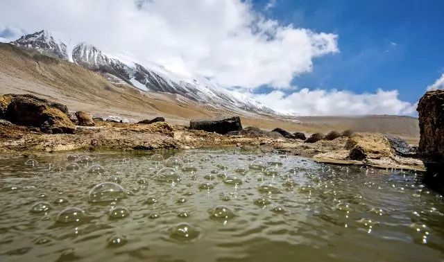 布喀达坂冰川下的温泉