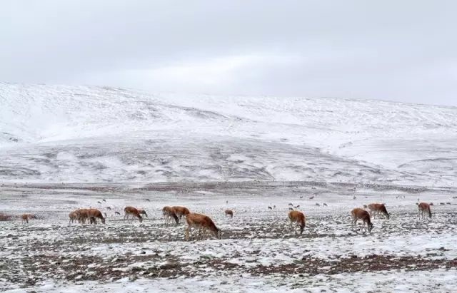 藏羚羊雪中觅食