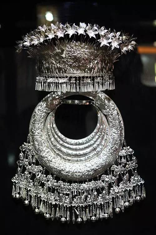银饰是苗族女人们的必需品。从少女到老妪,每一个苗族女人都有自己的一些银饰。家境富裕的人家可以花上一二十万元,为女子办齐全部的银饰,二三十斤的银饰穿戴在身上,从头武装到脚。若是家境比较拮据,也拥有起码数量的银手镯、发簪、银梳子、银戒、项圈、项链,和一个简单点儿的银帽子。银饰是苗族服饰文化的一部分,女孩想要吸引更多目光,就要在社群的时尚里凸显自己。