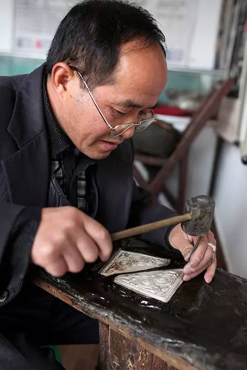敲打、拉丝、錾刻、焊接、吹泡……银饰的制作工艺,简单地说是用多种工具和方式,将银这种金属从一种形态变为一种新的形态,而其精湛技艺的习得,必须经过不断重复的训练,还需要一定的悟性。