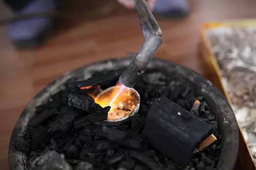 “焊水”的熔点要比焊接的两个银片都低。比如,70%纯度的银的熔点大概是500摄氏度,那么焊水的熔点就能调到300摄氏度。焊水熔点的高低,当中铜的比例是非常关键的。“能够掌握这个了,你就是师父了。”