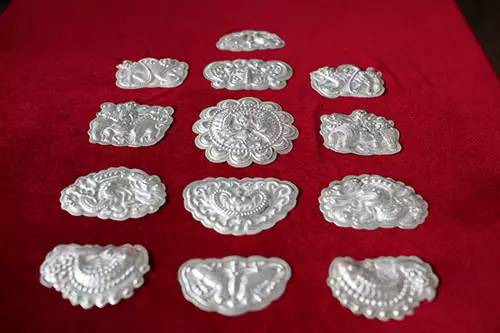 ▲龙、凤、狮子、蝴蝶等图案的银片