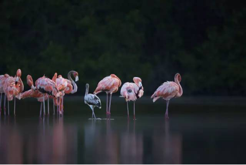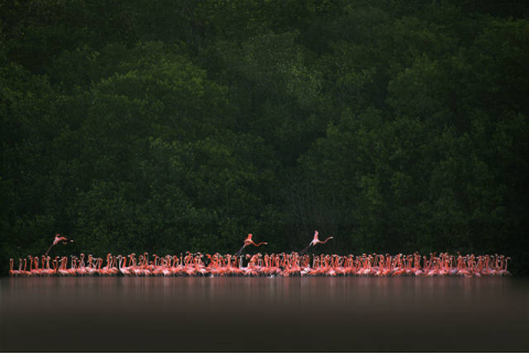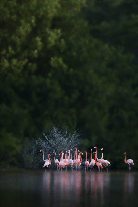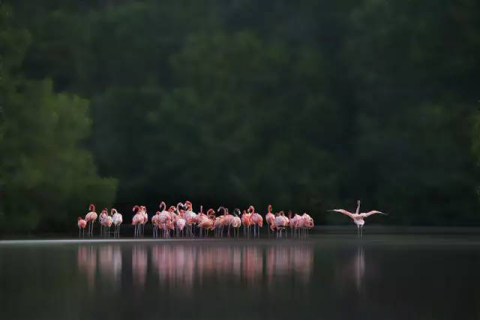 2018-07-25 18:32:00塞莱斯顿生态保护区是中北美洲最大的火烈鸟聚集地,也是尤卡坦半岛乃至墨西哥生态保护的骄傲。在这片占地超过500平方千米的自然保护区内,沿海的大片红树林是整个自然系统的核心,而火烈鸟则聚集在红树林之间的盐水湖中,在身后红树林的浓密背景下愈发显得出挑、动感,夺人眼球。