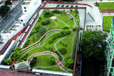 ↑博物馆屋顶复原曲流石渠景观
