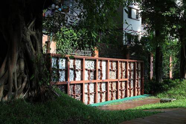↑景观墙,陈列着遗址出土的砖瓦标本。