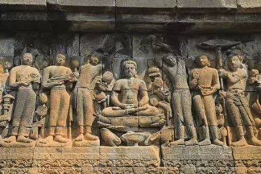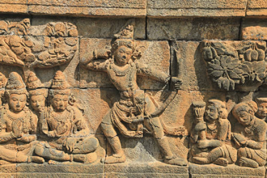 ↑婆罗浮屠的浮雕—释迦族的贵族在操演弓箭