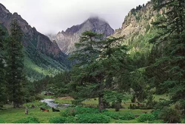 ↑白马雪山深处的牧场。白马雪山国家级自然保护区,是以多种冷杉为代表的各种寒温带树木的荟萃之地,是以滇金丝猴为主的珍稀动物的栖息之所,云集雪山、牧场、林海、溪流、野花的美景,从1862年起就成为西方“植物猎人”涌至的天堂植物园。而在这一带生活的藏族人,更秉承了藏传佛教的传统,与自然相依共存,“甘其食,美其服,安其居,乐其俗”。