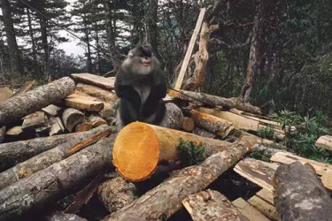 ↑滇金丝猴是一夫多妻,公猴要经过激烈的竞争才能得到母猴,这只公猴不幸失败了,只能离开原来的群体。如果在过去森林大片绵延,它还有机会去找其他的猴群,但现在森林没有了,它再也找不到同伴了,只能在此游荡。因为这里曾是它的栖息地。