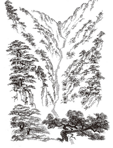↑谢凝高教授素描写生:泰山南天门
