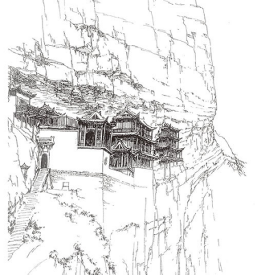 ↑谢凝高教授素描写生:恒山悬空寺