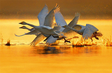 鄱阳湖也是世界上最大的白鹤越冬地,冬季有3000多只白鹤聚于鄱阳湖越冬,占全球白鹤总数的98%以上。届时,鄱阳湖成了举世瞩目的白鹤王国。来此越冬的还有天鹅,还有全球最大的鸿雁群落,数量达20余万只,它们春天北去,秋天南往,不管在何处繁殖,总是非常准时地来到鄱阳湖越冬。
