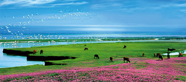 冬春季节,湖水似槽,滩地显露,河汊密布,芳草萋萋,芦花飞舞,形成了独特的亚热带湿地风光。当你来到鄱阳湖东南部,落入你眼帘的将是这么一幅美景:湛蓝的天空,悠悠的白云下,是美丽的江南大草原和草原中镶嵌的翡翠似的小湖泊。