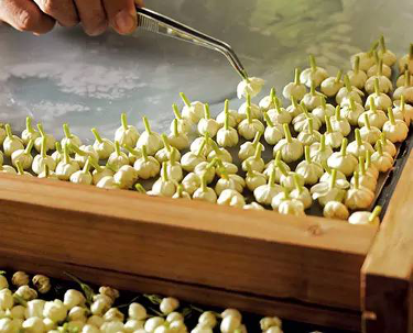 ↑茉莉精油提取采用最古老的冷脂吸法