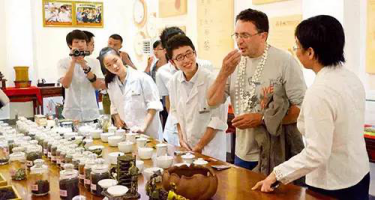 ↑正在品尝茉莉花茶的国际友人