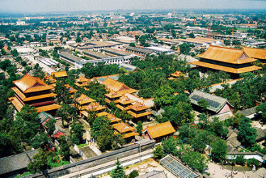 ↑孔庙十三碑亭。十三碑亭是专为保存封建皇帝御制石碑而建,又称“御碑亭”,南八北五,黄瓦耀金,鳞次栉比。