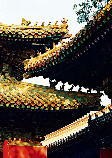 ↑勾心斗角的牌亭。孔庙的建筑结构错综复杂、布局精巧,这种高超的建筑技艺是古建筑学上所讲的“勾心斗角”,即双檐穿插交错,后人将其引申为更广泛的含义。