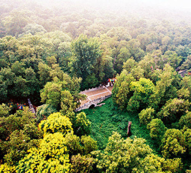 ↑航拍孔林。孔林是我国现存规模最大、持续年代最长、保存最完整的氏族墓葬群和人工园林。