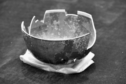 ↑现场出土的瓷器残片复原后的效果。