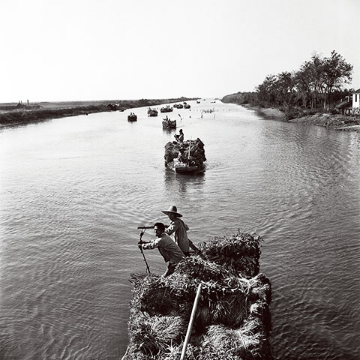 1970年,大运河苏南段,苏州到无锡的途中。当时农民种两季稻,家家户户都是通过木船运输水稻回家。