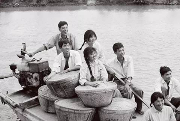 1977年,大运河苏州河段。向储粮仓送公粮的知青和当地农民。