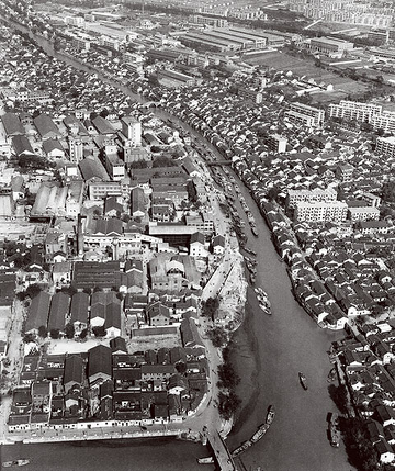1981年,横穿常州城的大运河。上世纪80年代,国家水利部、建设部需要相关资料,汤德胜多次航拍长江大桥。