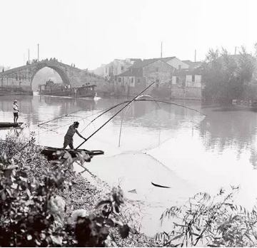 1983年,大运河常州段。人来人往的古桥和运河沿岸瓦房、垂柳、钓鱼人,勾勒出一幅江南鱼米之乡的富足与闲情。