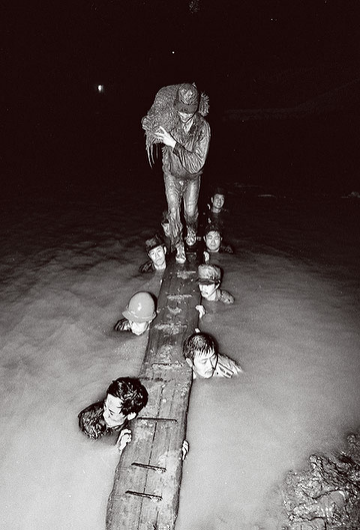 1991年,江南重大洪灾常州现场。常州运河段重要堤岸决堤,洪水泻入城区,解放军战士搭起人桥,用泥袋堵塞决堤口。这张照片当年被新华社评为优秀作品。