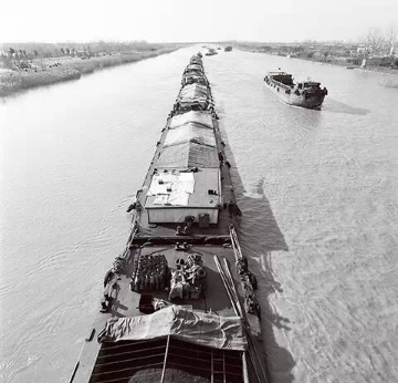 2001年,大运河山东与江苏交界处。尽管陆路交通已非常发达,但水道运输依旧是泥沙、石头及各种建筑材料的首选方式,运河上船队繁忙依旧。