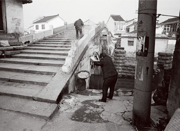 2003年,湖州。大年初一的清晨,运河边上的老居民祭桥神。大运河沿岸伴生了丰富的庙宇和祭祀文化。